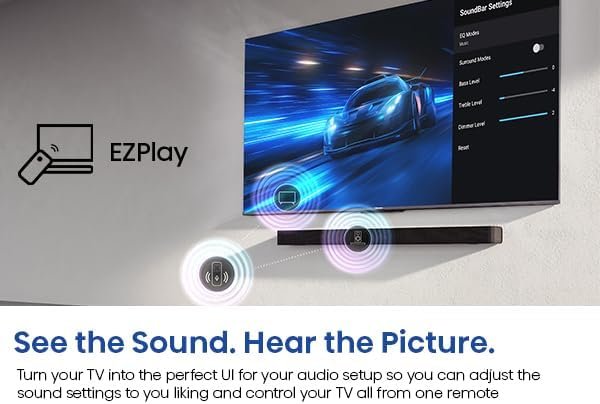 - EZPlay – Automatically pair your Hisense soundbar unit to your smart TV for a simple, user-friendly interface. Turn your TV into the perfect UI for your audio setup so you can adjust the sound settings to you liking and control your TV all from one remote.