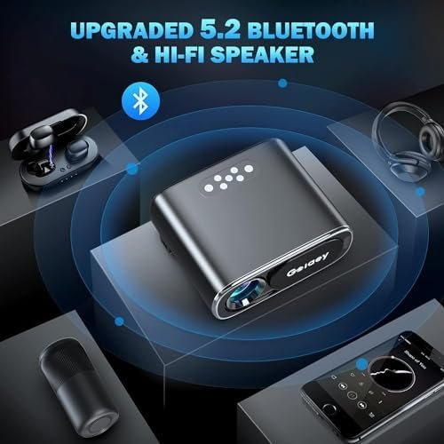 - [WIDE CONNECTIVITY & LIFETIME TECHNICAL SUPPORT] GO1 WiFi bluetooth projector has equipped with 1* Ethernet input, 1* AV, 1* USB and 2*HDMI, which can be connected with andriod/iphone/PC. This phone projector is compact and you can take it anwhere. Enjoy peace of mind with Goiaey’s friendly customer support and 3-year warranty. Any issue you encounter, we are ready to help you within 24 hours.