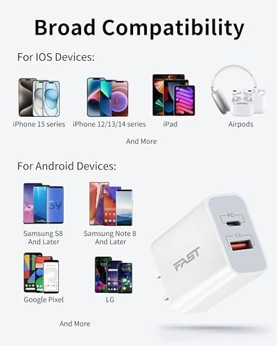 - Dual Port High-Speed Charging: USB C Wall Charger has a 20W USB-C Power Delivery port and an 18W USB-A fast charging port. Support for fast charging of most cell phone or tablet devices to minimize waiting time.