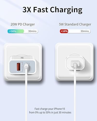 - With power delivery 3.0 fast charging technology, charge your iphone 15/14 up to 50% in just 30 minutes. 3X faster than 5W charger.